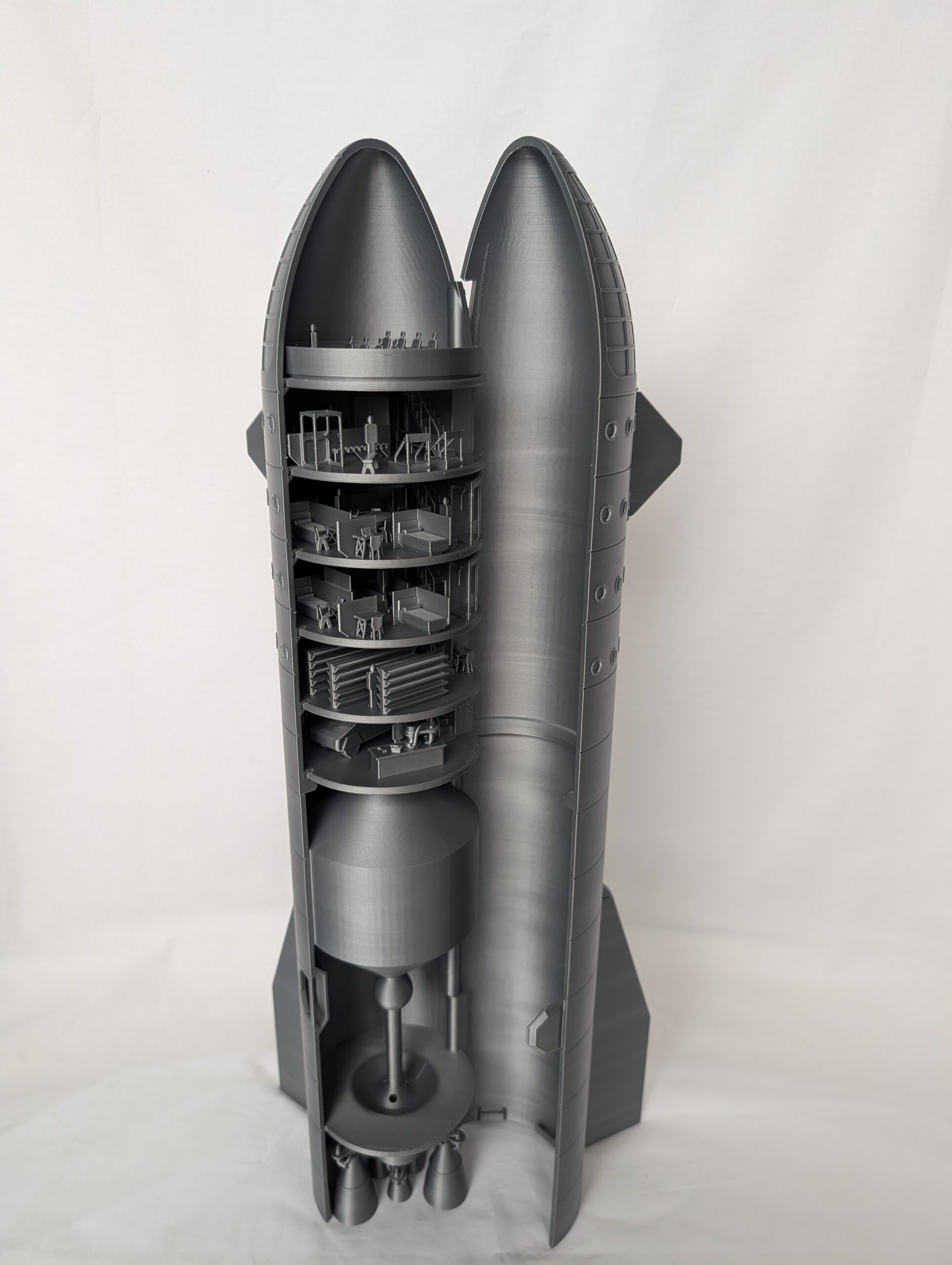 Introducing the Executive Starship. This includes the starship and the executive floor package. This model opens up to reveal the interior floors, liquid oxygen tank, methane tanks as wells as the vacuum and sea level rocket engines.